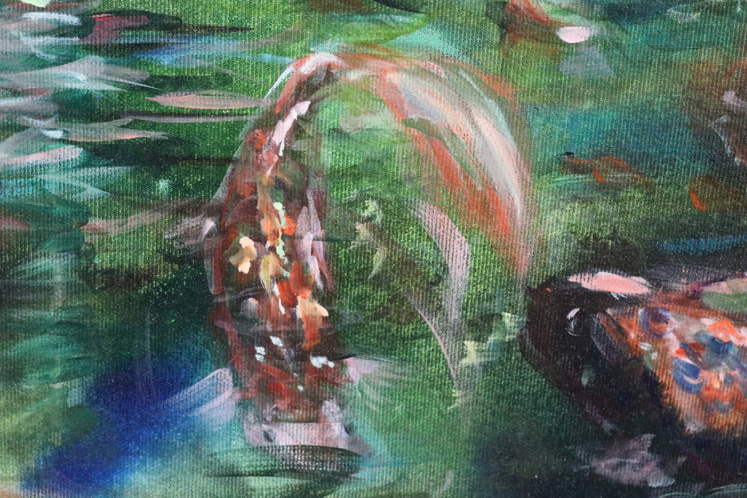 Um sie herum Koi-Fische, rastlos und fließend, in ständigem Wandel.