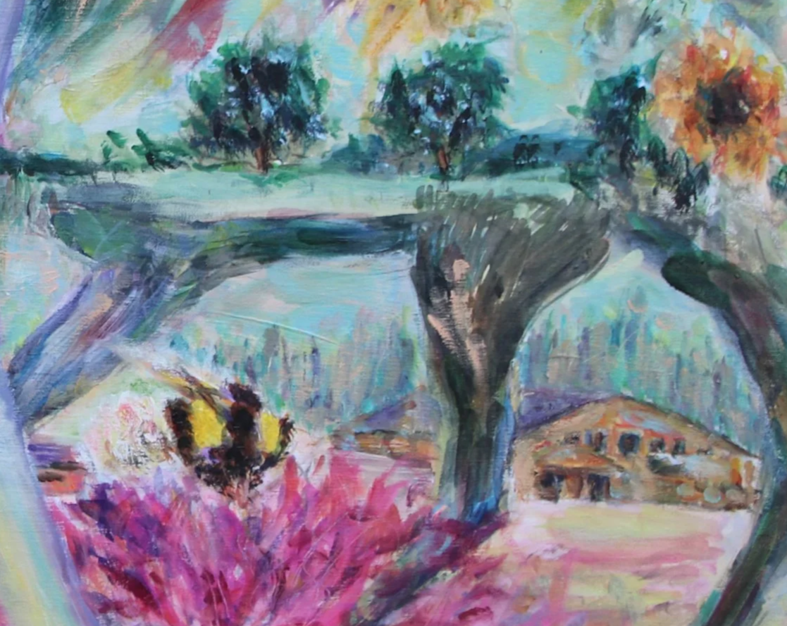 Und ganz vorn, eine Hummel auf einer Blume. Klein, unscheinbar und doch lebendig, im Hier und Jetzt.