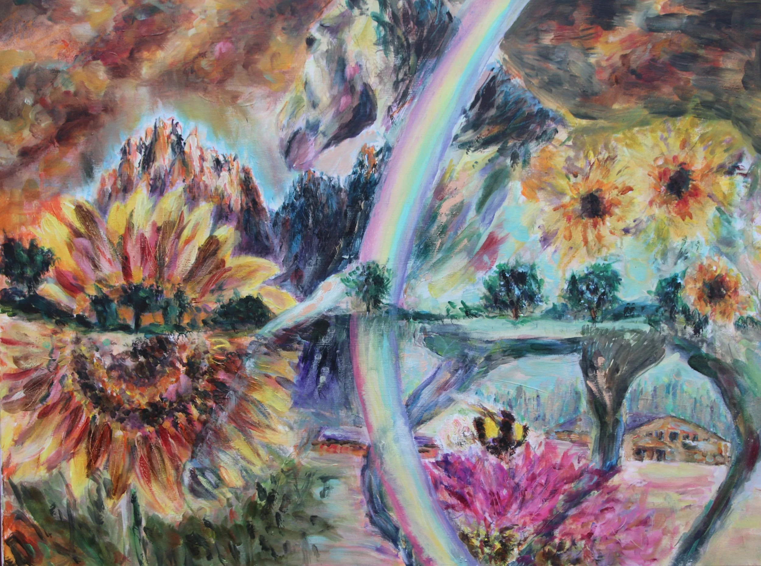 Unter ihm die Ranch, die Berge, Sonnenblumen, ein Regenbogen – Orte der Sehnsucht, des Ankommens, der Erinnerung.