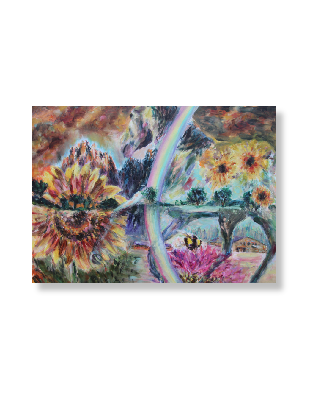 Unter ihm die Ranch, die Berge, Sonnenblumen, ein Regenbogen. Orte der Sehnsucht, des Ankommens, der Erinnerung.