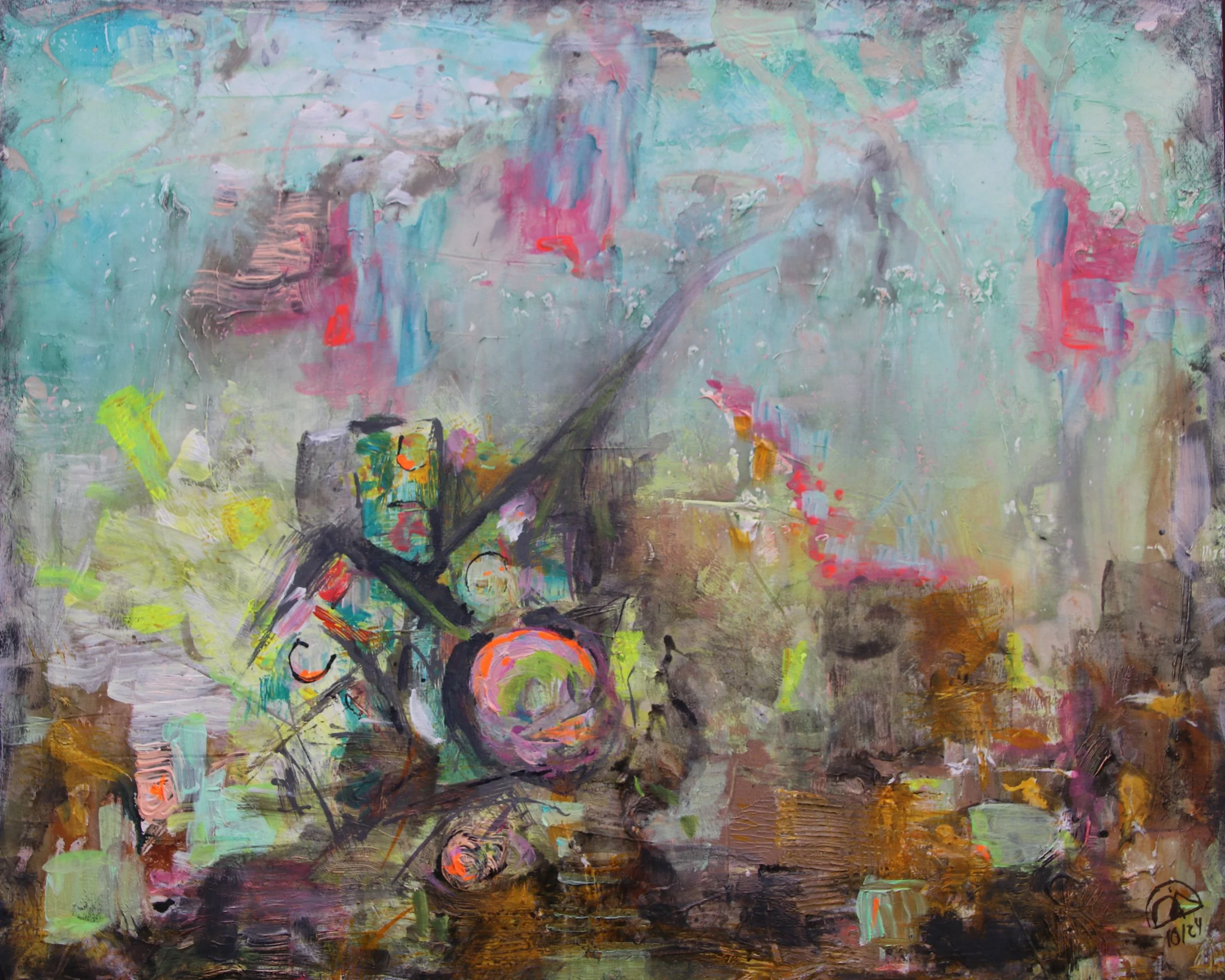 Ich ließ den Zufall geschehen. Formen, Farben, Linien – sie erschienen, ohne dass ich wusste, wohin sie führen. Doch während ich malte, erkannte ich die Symbole, die aus meinem Inneren auf die Leinwand kamen. Und dann verstärkte ich sie. Nicht alles, was zerbrechlich erscheint, ist schwach.