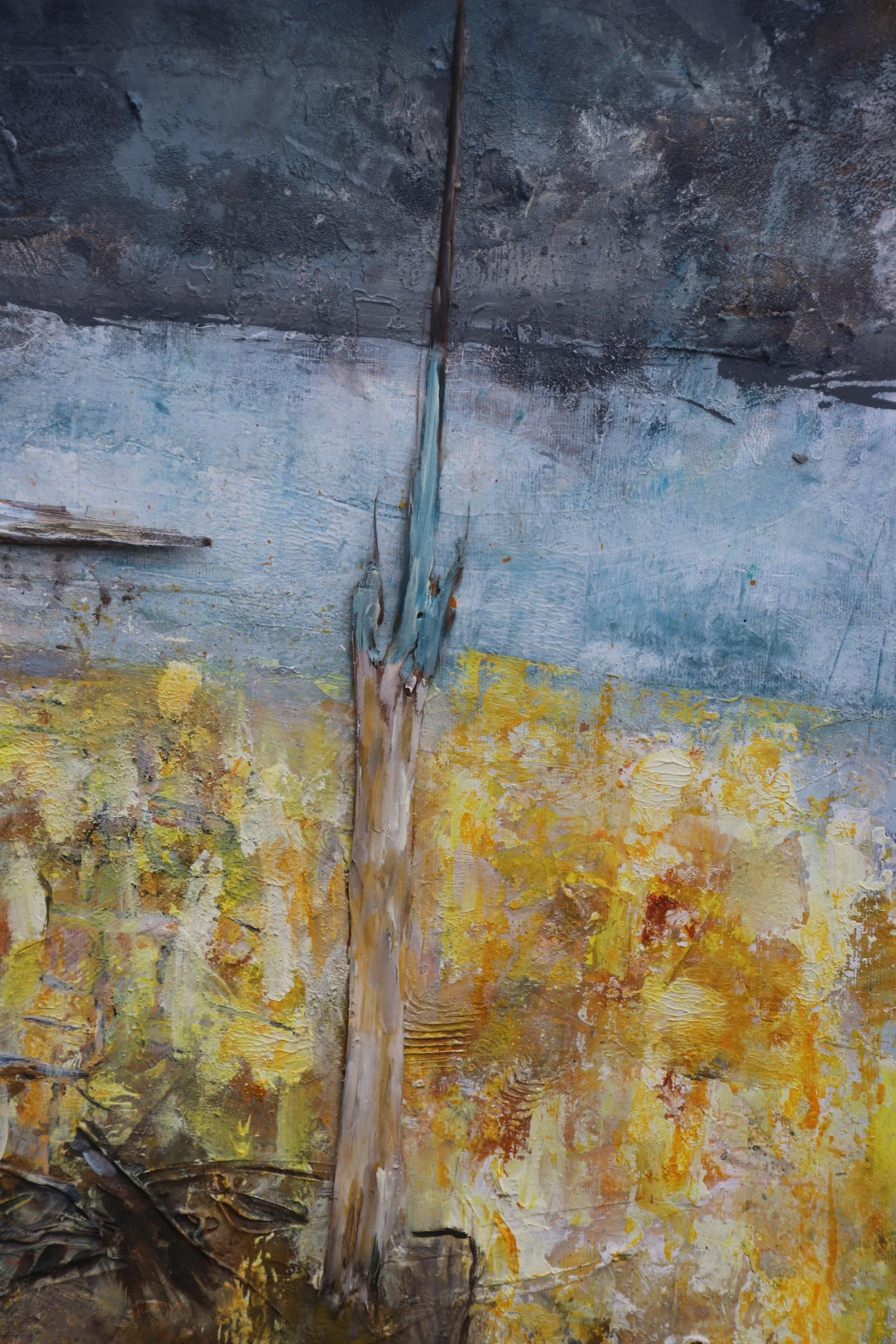 Der blaue Ast, scharf wie ein Messer, markiert den mutigen Schnitt mit dem, was vergangen ist. Ein Moment, in dem Altes bewusst losgelassen wird, um Raum für Neues zu schaffen.